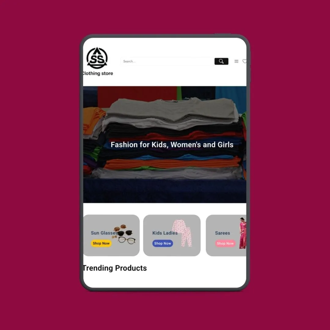 SS Cloth Store is a comprehensive online fashion destination offering an exclusive range of clothing and accessories for men, women, and kids. The brand focuses on delivering high-quality, trendy, and comfortable products such as sarees, kurtas, tops, jeans, shirts, T-shirts, night pants, and stylish accessories including wallets, perfumes, earbuds, and spectacles. The website was developed to provide a seamless, engaging, and easy-to-use shopping experience for all fashion enthusiasts.